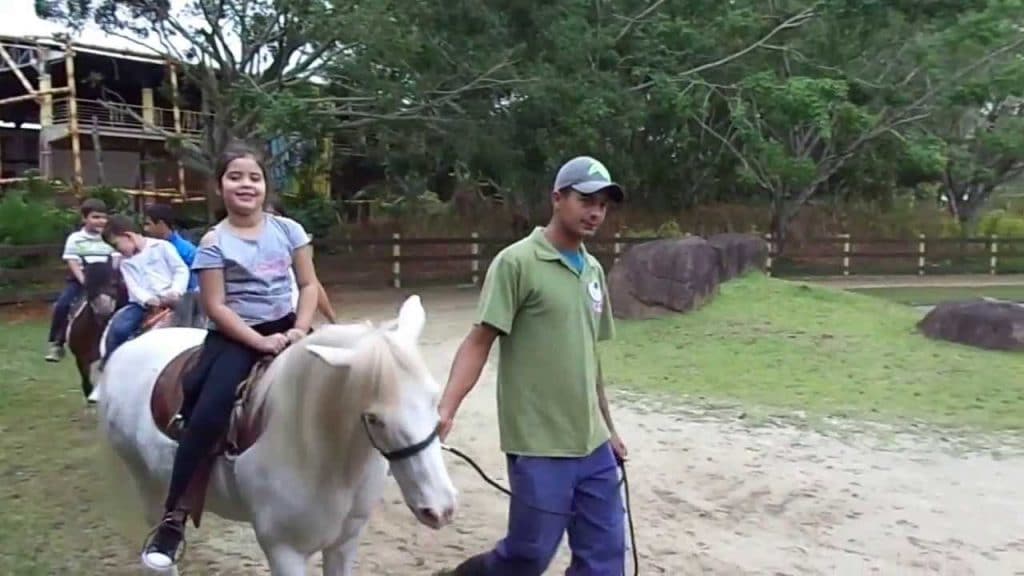 Além de conhecer de perto estes animais, as crianças podem ter a experiência de dar um passeio com eles.