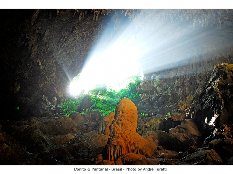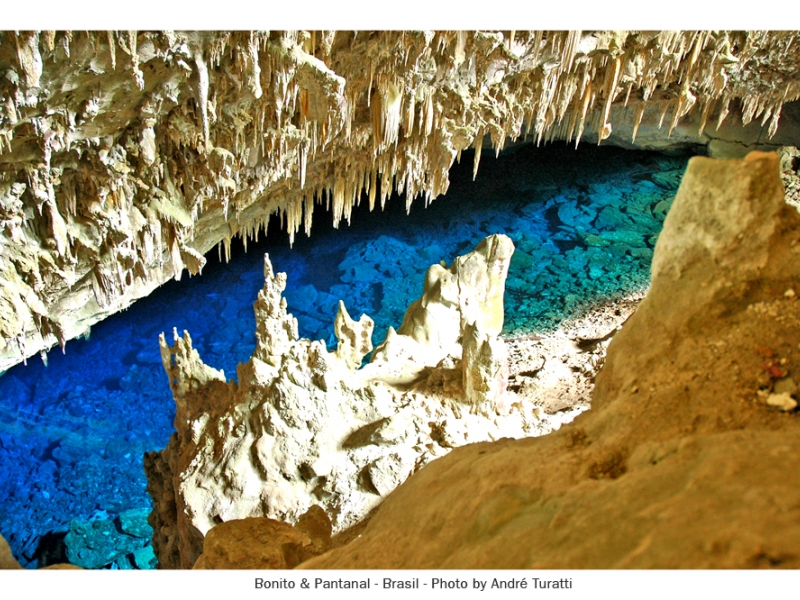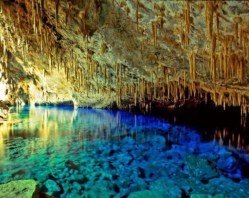 Após uma descida de 100 m, depara-se com um lago de águas intensamente azuladas, cuja profundidade estima-se ser de 90 m. Com suas formações geológicas, não só o teto, como o piso da gruta são repletos de espeleotemas de várias formas e tamanhos. Desperta a atenção dos turistas e pesquisadores do mundo inteiro. Ninguém sabe ao certo de onde vêm suas águas, acredita-se na existência de um rio subterrâneo, que alimenta o lago.