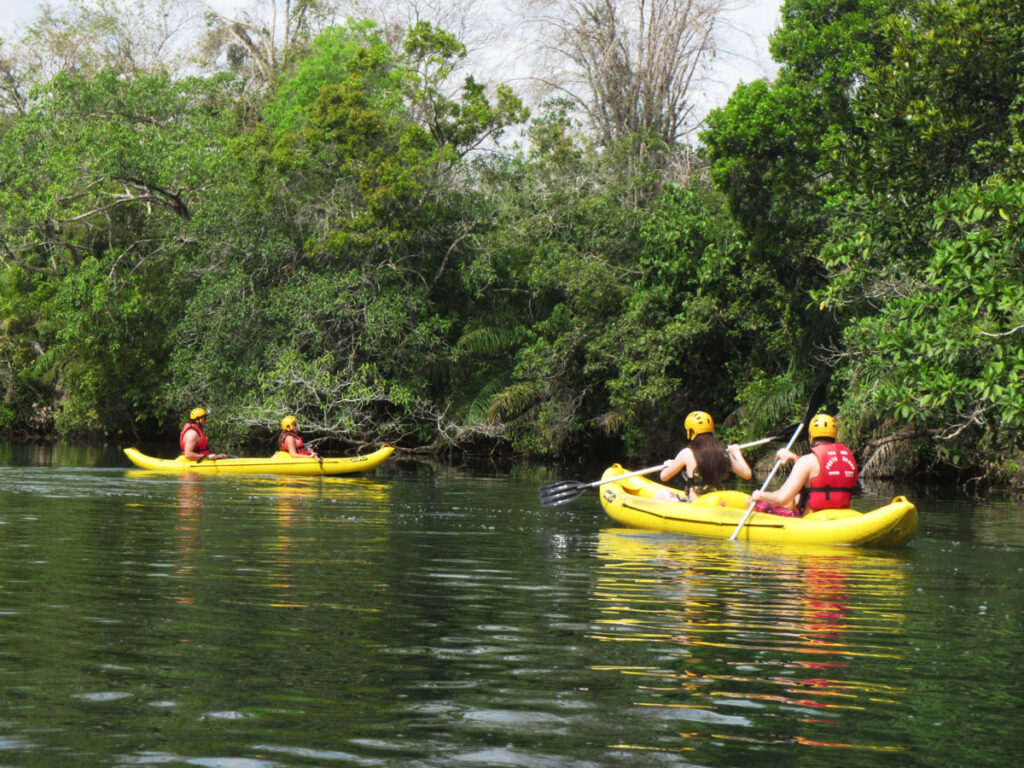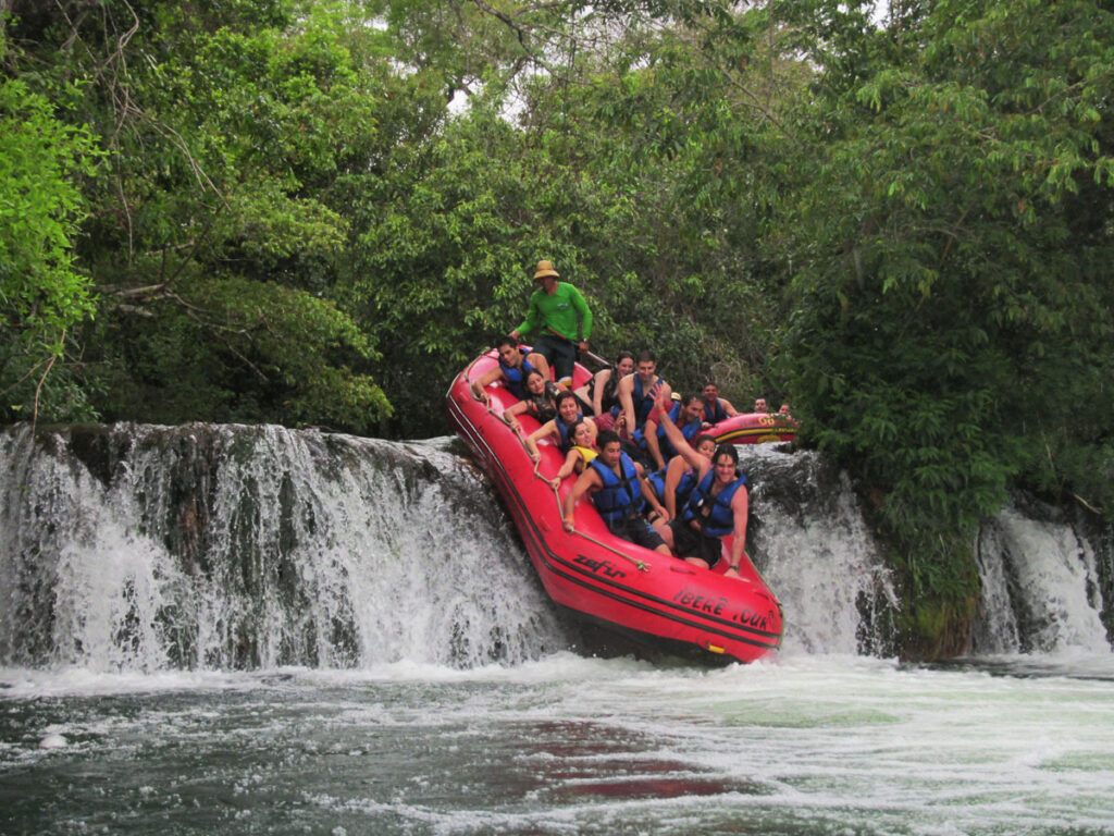 Em um bote inflável você vai subir remando o rio Formoso. Vamos passar por cachoeiras até chegar embaixo de uma cachoeirinha, onde poderemos nos divertir e se refrescar. Inicia-se a descida passando por 3 cachoeiras até o retorno ao Porto da Ilha.