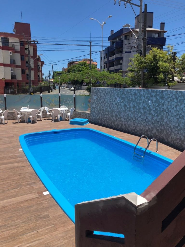 Contamos também com área de lazer, churrasqueira, piscina e internet.