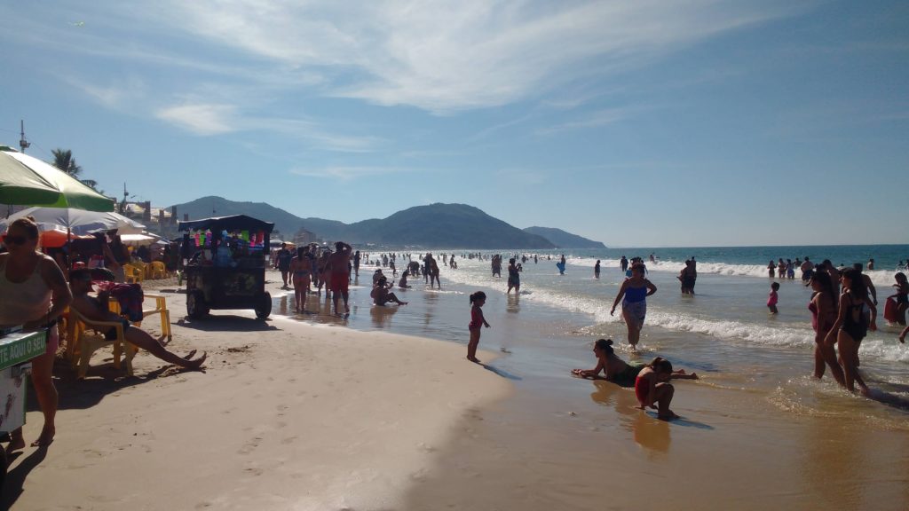 O mar é aberto e de cor azul, suas águas não são frias, tem dias que o mar está bem calmo e em outro com muitas ondas bom para o surf. Nesta praia também são realizados passeios náuticos. Na orla da praia conta com bares e restaurantes, alguns ficam abertos o ano todo. Comida típica como frutos do mar e comida açoriana. Há também lojas de roupas, sapatos e artesanatos.